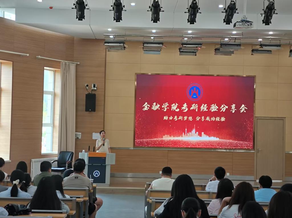 为助力学生考研,6 月 11 日下午,金融学院在 8106 教室举办考研经验分享会,特别邀请金融学院 2025 届 8 位在考研中脱颖而出的毕业生进行经验分享,金融学院团总支书记柳萌馨老师主持分享会,金融学院院长助理石丽君老师出席并致开场词,金融学院辅导员及众多学生参与其中。