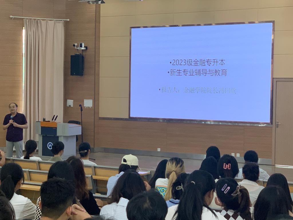 为帮助大一新生更好地适应大学生活,建立起良好的人生观与价值观,树立好新一轮的人生目标,度过美好而充实的四年大学生活,金融学院院长冯曰欣教授于9月8日上午在8106教室为2023级金融学专升本新生开展了入学教育讲座。